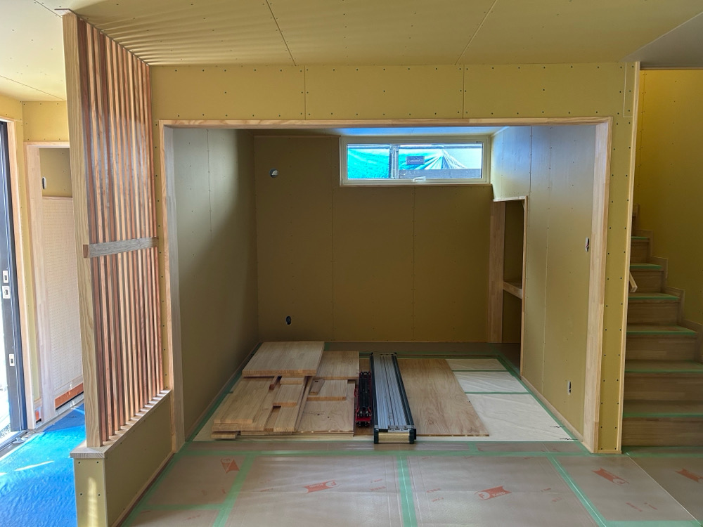 大工さんの丁寧な仕事ぶりが分かる木工事完了後の様子です。