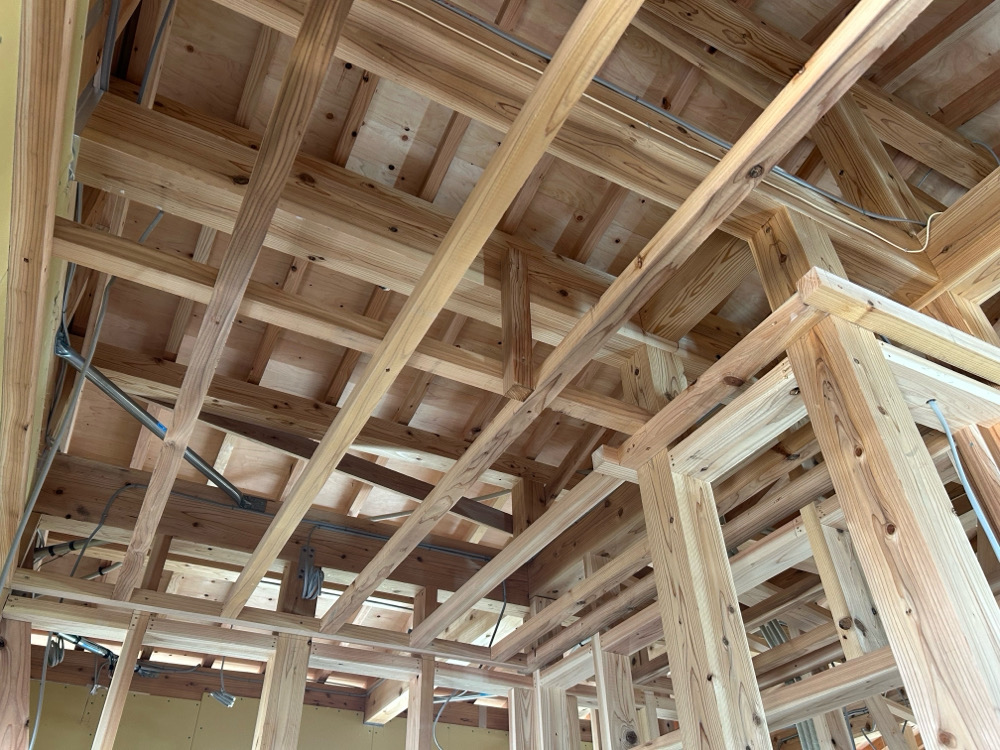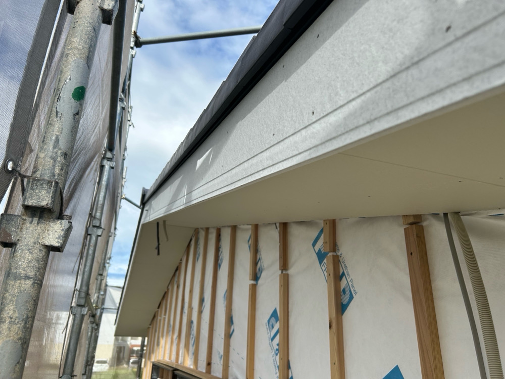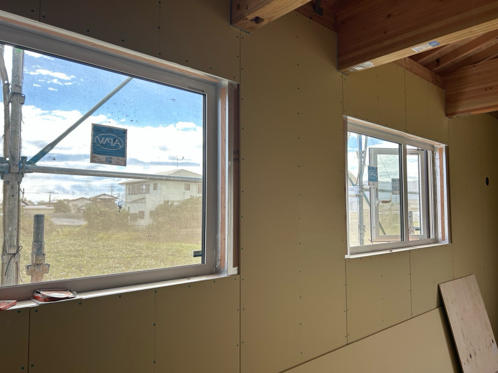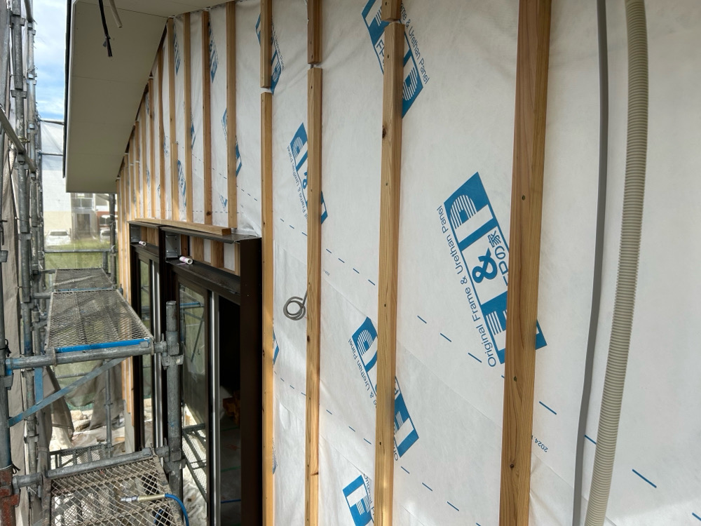 さらにその上に、横向きの下地板(2枚目の写真)を施工することで、壁内に空気の通り道ができます。
