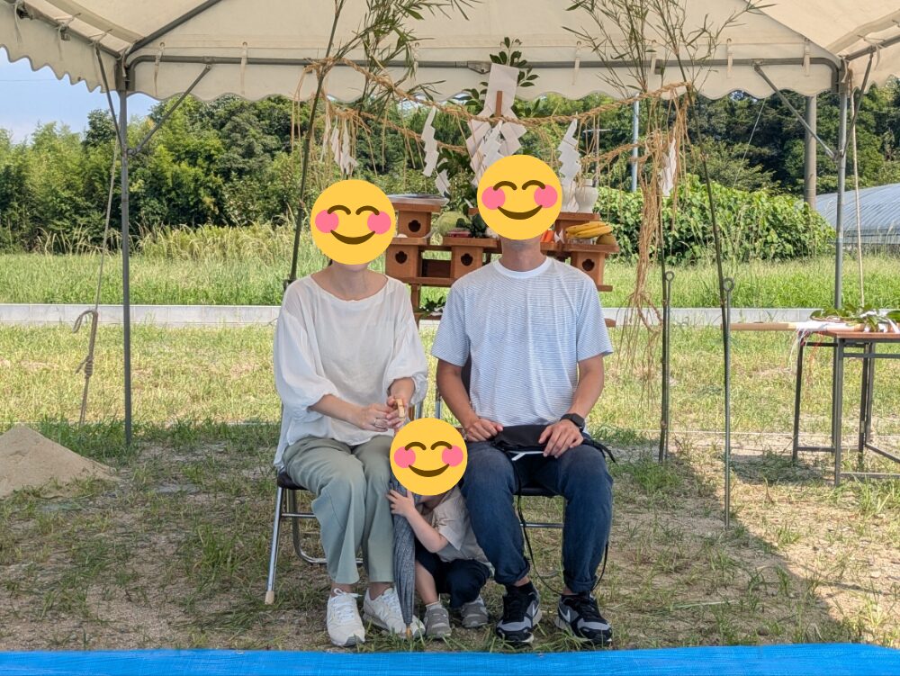 土地の神様にご挨拶し、工事の安全とご家族の繁栄をお祈りしました。