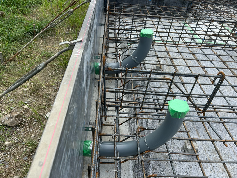 コンクリートを流す前に設置しておくことで、配管の通り道を確保でき、将来的なメンテナンスもスムーズに行えるようになります。